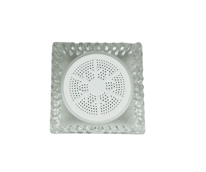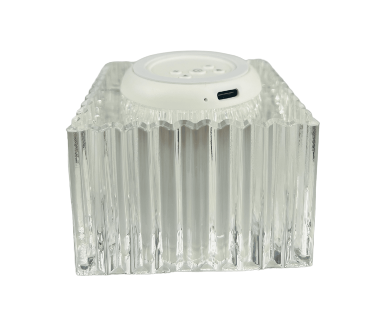 Modern and elegant square design made of clear crystal. It works via Bluetooth