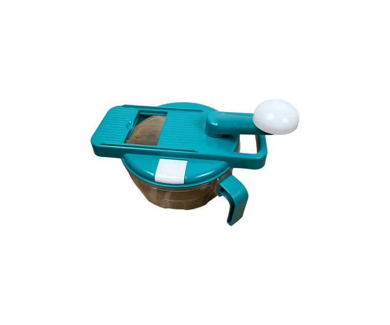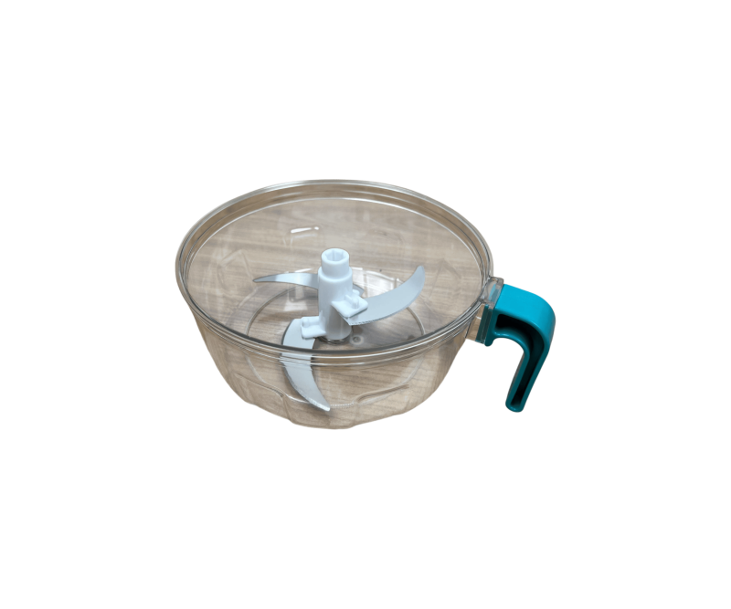Main chopper with a transparent bowl and rotating handle.