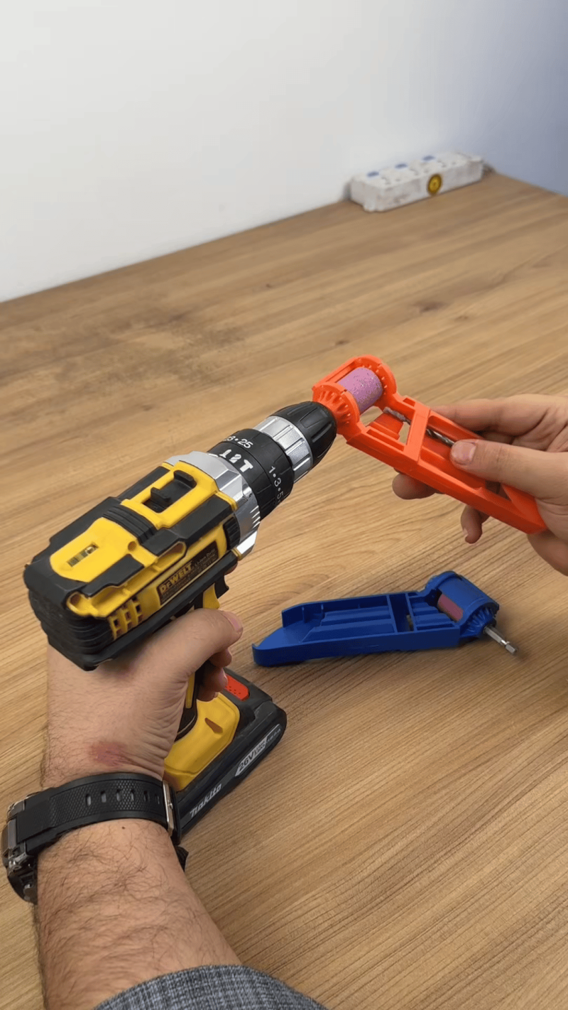 Comfortable, compact design: Can be mounted directly onto the drill via a hex socket (6.35 mm) to act as a quick sharpening tool.