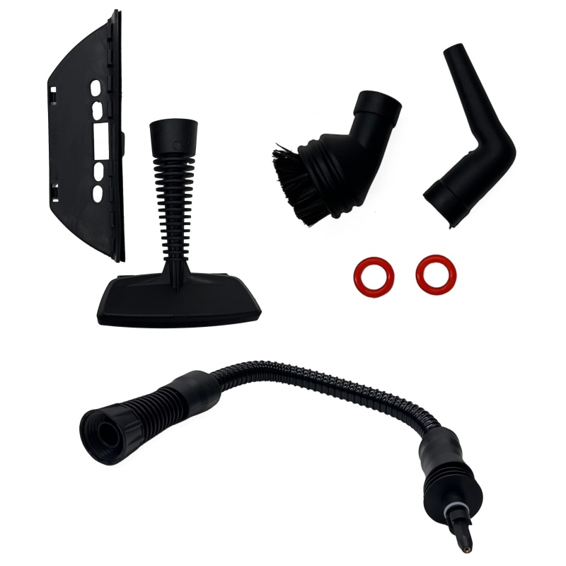 - ئیکسسوارات: ٩ هاوپێچی جیاواز بۆ پاککردنەوەی ڕووکاری جۆراوجۆر: پاککەرەوەی هەڵم، قۆنتەر و کوپێکی پێوانە، بۆری درێژکەرەوەی نەرم، سەری پاککەرەوەی پان، فڵچەی پاککردنەوەی گوڵاو، ئامێری درز، مەسح و پادی لاستیک، و کەڤەرێکی قوماش.