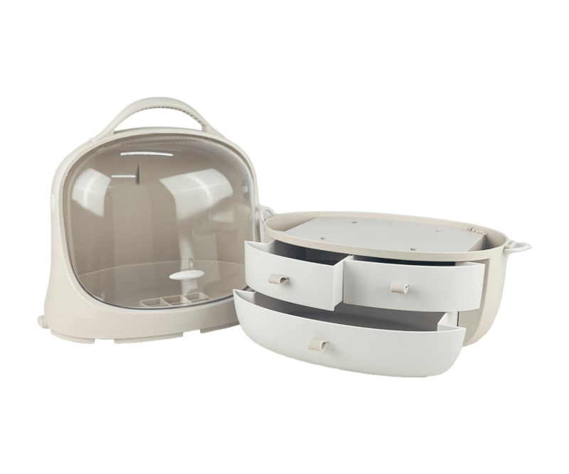 تتميز بسعة تخزين كبيرة تتيح لك تنظيم وتخزين مجموعة كبيرة من مستحضرات التجميل وأدوات العناية بالجمال.