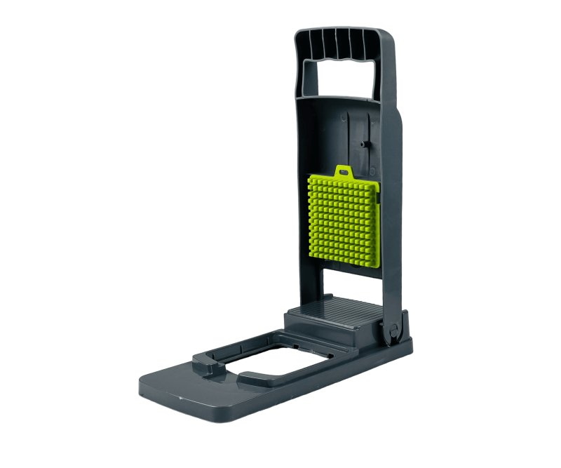 تحتوي على مقبض مريح يسهل الضغط على الخضروات وتحريكها عبر الشفرات