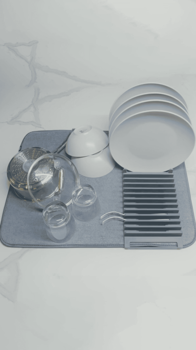 Used for drying dishes, glasses, and utensils after washing in an organized and practical way.
